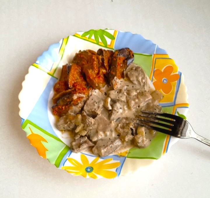 Печень в сметанном соусе на одной сковороде.