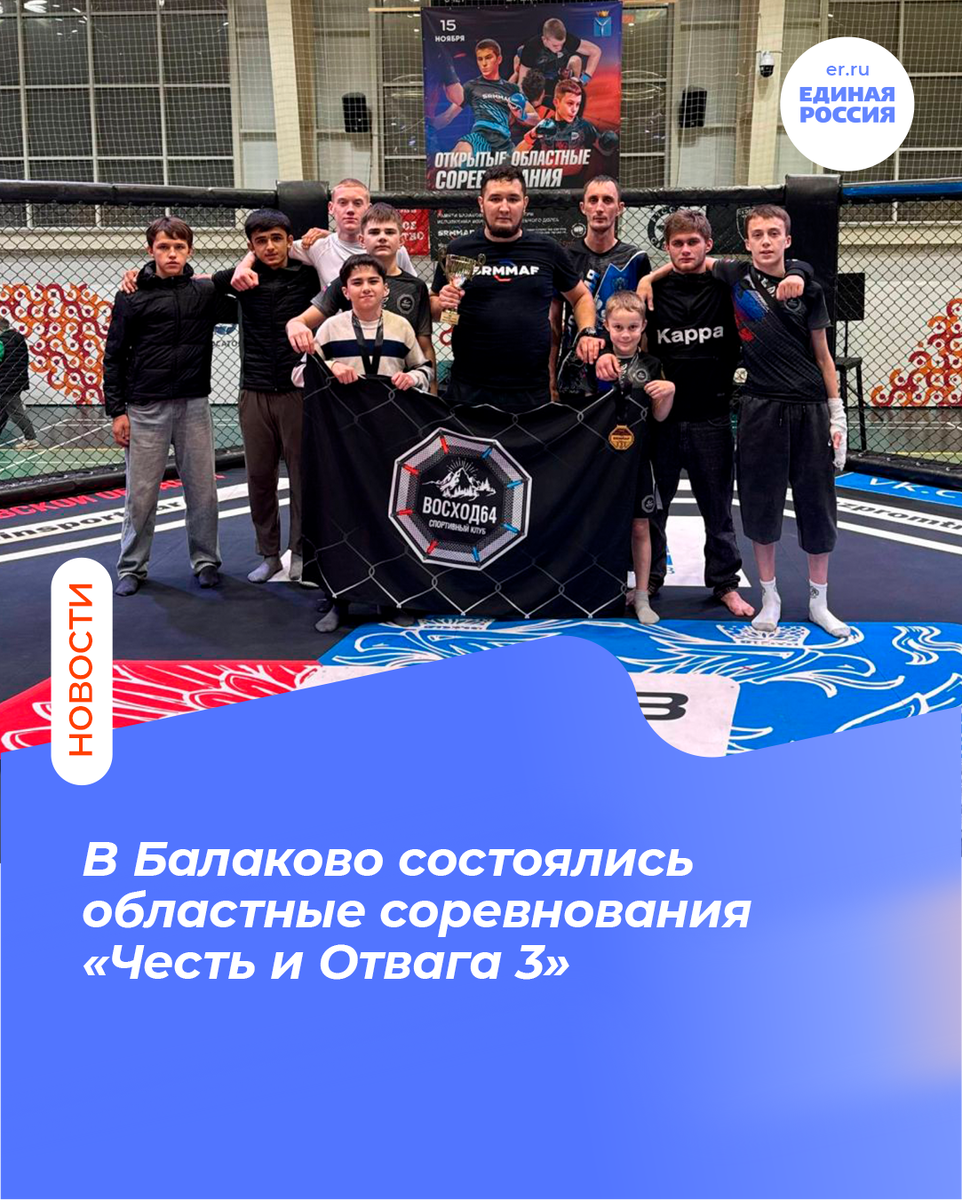 💬«Хотелось бы выразить слова благодарности организаторам: Федерации смешанных единоборств Саратовской области, президенту федерации ММА Даци Дациеву, старшему тренеру сборной Саратовской области по ММА Алексею Жигачеву. Для нашей молодежи это большая возможность проявить себя в спорте»,- отметил местный координатор партпроекта Ринат Галимов.