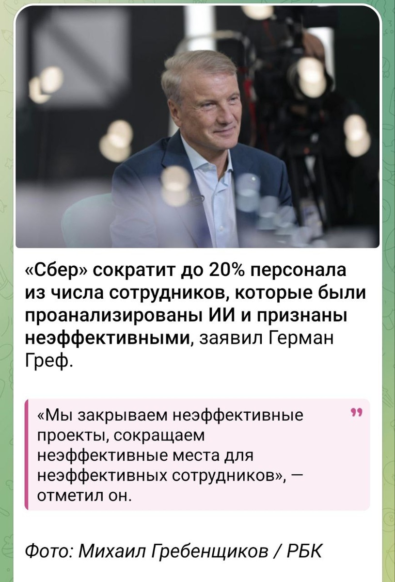 + Ну вот .... Недавно у меня была консультация с руководителем из Сбера. У него 3 ставки подчиненных в отделе сократили, говорят, работайте с ИИ. А он не качественно работает, поэтому клиент (его направление, скажем так, связано с высоким уровнем рисков) все перепроверяет, рук не хватает, работает в 7 дневке , тест на выгорание красный красный.... #тренды@poldner