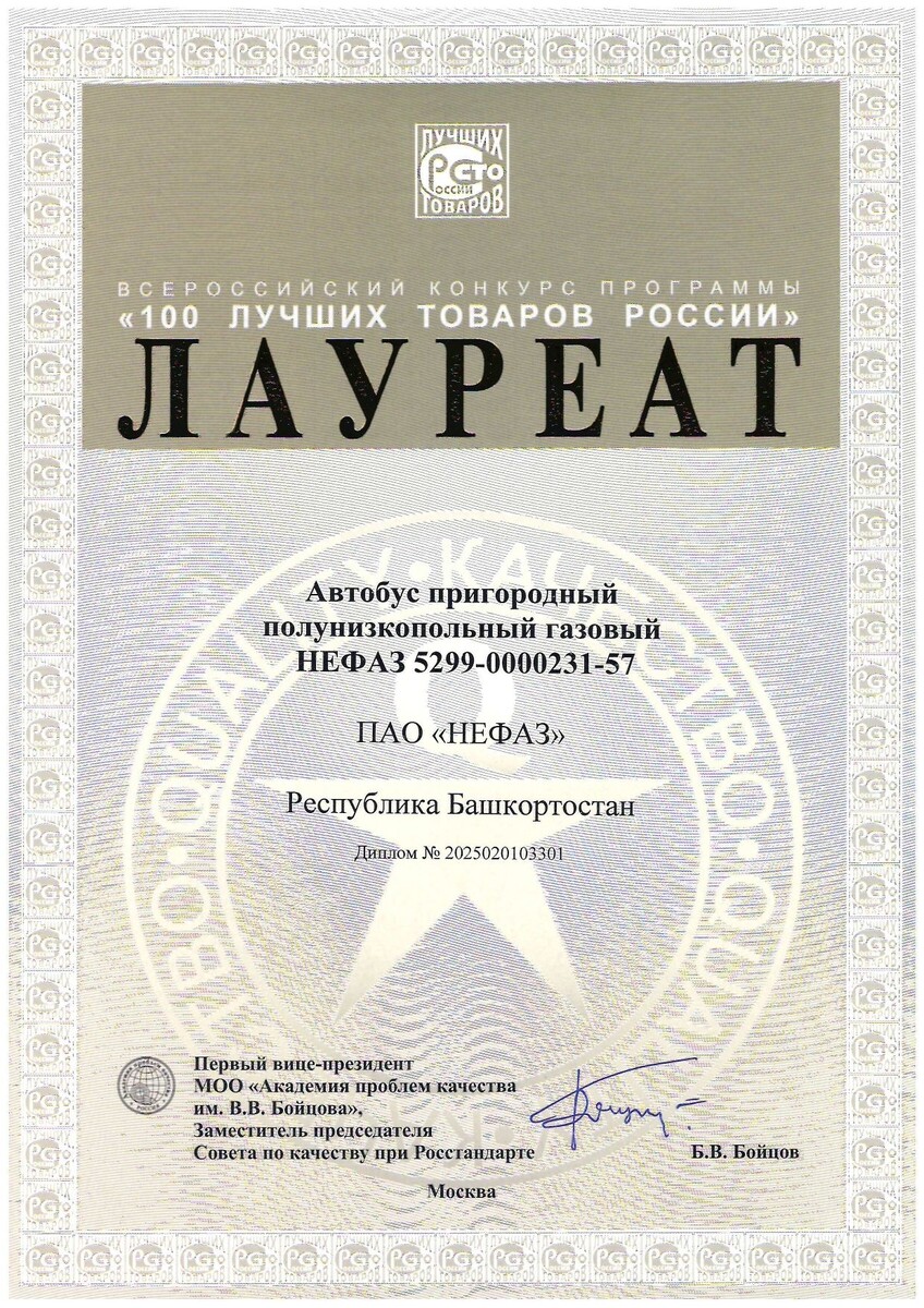 Предприятия Республики Башкортостан традиционно принимают активное участие в конкурсах, направленных на выявление наиболее качественных и конкурентоспособных продуктов отечественного производства. Одним из значимых мероприятий такого уровня является Всероссийский конкурс Программы «100 лучших товаров России». Среди победителей конкурса 2025 года есть и продукция ПАО «НЕФАЗ». Высшей награды удостоен пригородный полунизкопольный газовый автобус НЕФАЗ-5299-0000231-57, ранее одержавший победу на региональном этапе конкурса «Лучшие товары Башкортостана». Этот продукт получил высокую оценку представителей контролирующих организаций, профильных министерств, органов по сертификации и Федерального бюджетного учреждения «Центр стандартизации и метрологии имени А.М. Муратшина» в Республике Башкортостан. Оценивая автобус НЕФАЗ, эксперты обращали особое внимание на соответствие установленным стандартам, требования безопасности, цену, потребительские отзывы, объем продаж и ряд других важных факторов