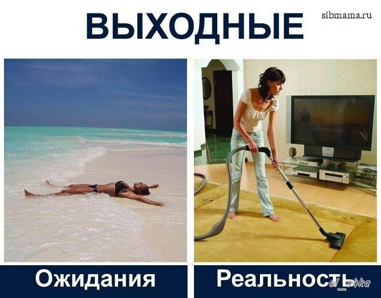 Как проходят наши выходные? Если одним говорить, то энергосберегающе. Вот так, как в этом меме начинается суббота. Бытовые то дела никто не отменял. Терпеть не могу грязь, поэтому после завтрака начинается уборка. Уборка/готовка Обязанности с супругом делим фифти/фифти - он половину комнат, а я оставшуюся. Сына заставляю подбирать и складывать свои вещи и игрушки в комод и коробки, а также относить грязные в корзину для белья. Он обожает водный пылесос и готов бесконечно просить нас пылесосить квартиру. Но все равно помощник из него так себе - скорее мешает. Потом уборка плавно перетекает в готовку обеда) Бассейн и свободное время Потом он самый, а после поход в бассейн с сыном, а там и вечер настает - фри тайм у нас. Сын занят своей аутичной лабудой, а я сплю, либо шарюсь по сети, либо сериалы смотрю. У нас есть мужем традиция совместного просмотра чего-либо под вкусняшки. Иногда вечером ходим в кино/театр/кафе. Тогда ребенка оставляем у родителей. Периодически зовем друзей на нас