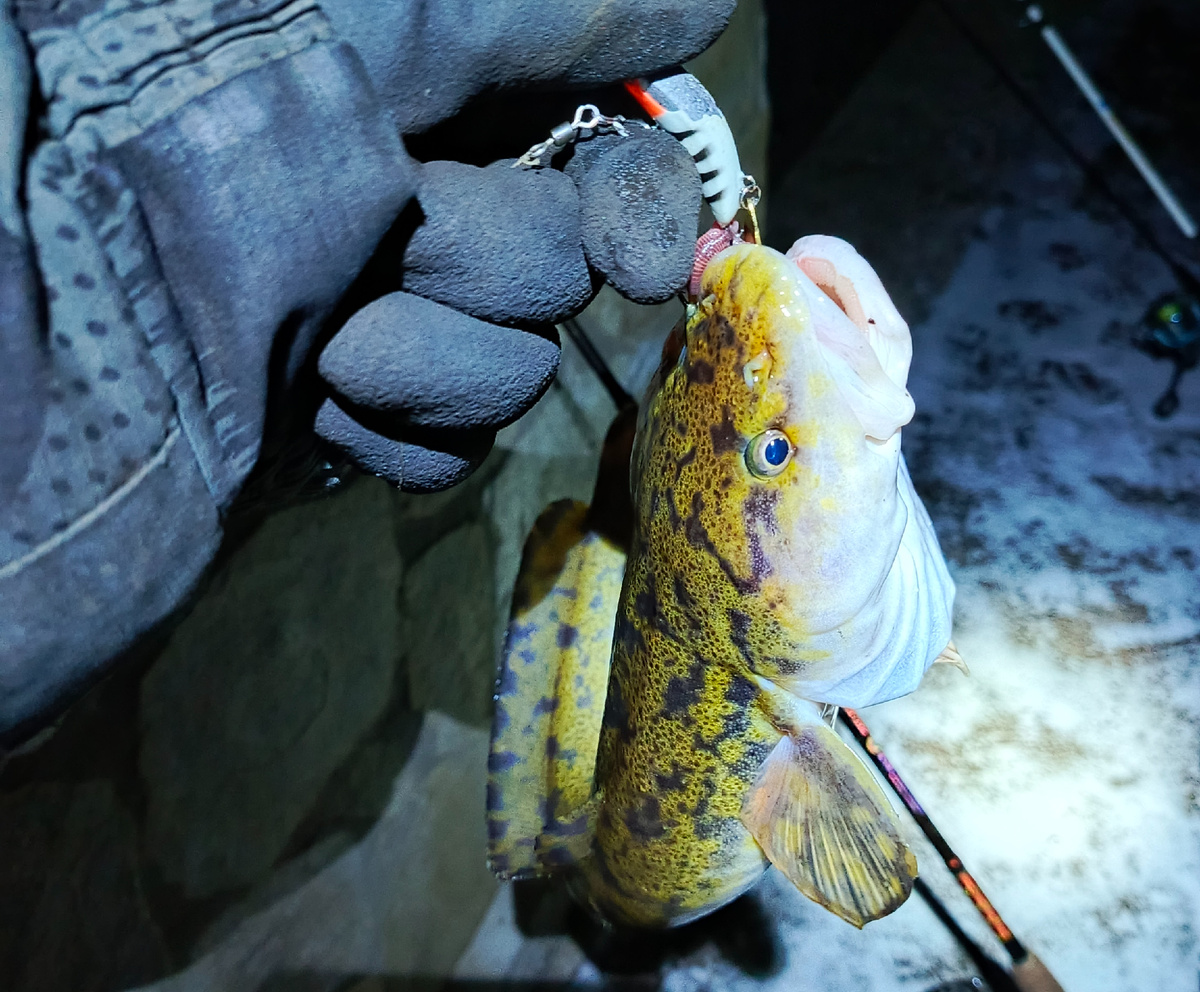 Болванить налима можно не только со льда или с лодки, а также с набережной. Как-то слышал, что с набережной кто-то ловил налима на болванку. Долго сомневался в этом, но все же решил попробовать. Первые попыток пять как-то все мимо, и вот последние две рыбалки получилось поймать двух небольших. Как я понял, он подходит к набережной в определенное время года, предполагаю, перед ледоставом. Время суток тоже примерно одно, в первый день были 4 поклевки, из них одна поимка, с 18:40 и до 19:05. Реализация плохая, так как болванил зимней короткой удочкой и подсекать было неудобно. Во второй день решил использовать спиннинг, но в тот день налим был не так активен, и была одна поклевка и поимка в 18:55. Спиннингом подсечка получается более уверенная. В качестве болванки использовал фосфорный Jig Spinner от Akara. Глубина ловли около метра. По приманкам лучше работал червь дендробена. Пробовал на тюльку, но так как все дно в больших камнях и различных плитах, оставшихся после постройки набере