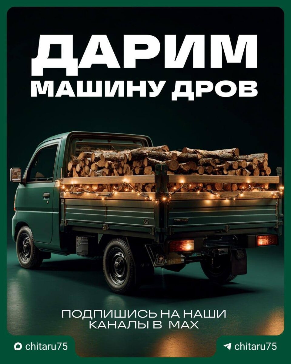 @chita.ru дарит машину дров подписчику. Стартовал самый народный розыгрыш с призом, который сможет порадовать практически каждого забайкальца. Условия для участия максимально простые — нужно подписаться на два канала «Чита.Ру» в MAX. ➡️ Основной новостной канал. ➡️ Канал «Истории». 📌Обязательно переслать пост другу. После выполнения всех условий под конкурсным постом нужно нажать кнопку «Участвую» и поставить лайк. Если победитель будет из района, мы найдем способ доставить дрова туда. ✅ Рандомайзер подведет итоги 10 декабря. Все условия проверим вручную, а в случае несоблюдения победителя переизберем.