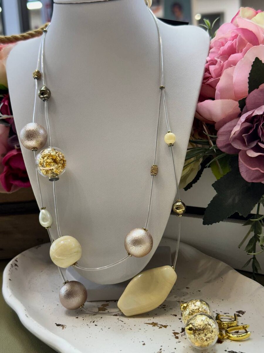 Бежевые оттенки тоже могут быть яркими! Особенно если в них присутсвуют блестки или сусальное золото. Микс разных форм, покрытий и размеров бусин делают это колье достойным аксессуаром как на работу, так и на праздник.👯♀ Колье 6600 Серьги 3600 ✨Нажмите для заказа ✉️ Нажмите чтобы задать вопрос