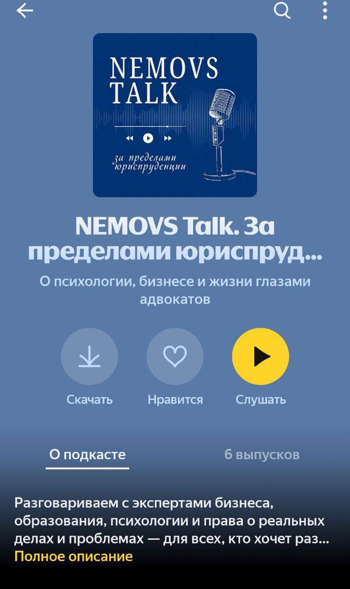 ☄️ Рады сообщить, что теперь наши подкасты доступны и на Яндекс.Музыке Это те самые, что есть в формате видео, но теперь и доступны для прослушивания в аудио формате Ссылка на аудио подкасты Nemovs.Talk на Яндекс.Музыке Слушайте. Лайкайте. Добавляйте в избранное