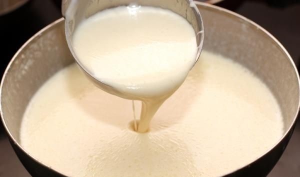3. В отдельной миске взбейте жидкие продукты. Взбейте яйца венчиком или миксером до однородности, добавьте растительное масло и нагретое молоко. Непрерывно помешивайте, чтобы смесь стала кремовой. Лайфхак: Используйте теплое молоко, а не ледяное — холод убивает эластичность яиц, и тесто получается липким. Холодный продукт можно согреть, нырнув бутылку в горячую воду. ☕🥚