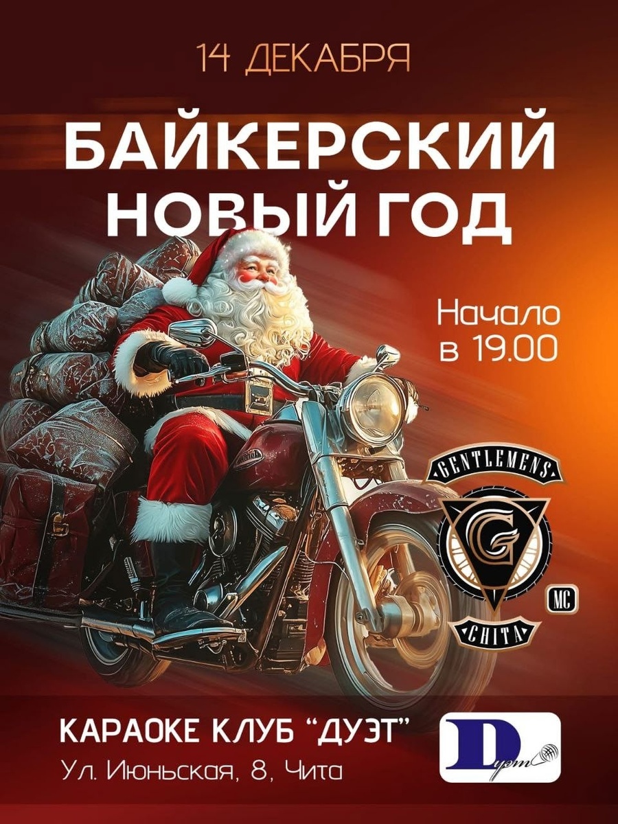🔁 Дальняк.рф™: Друзья! ❄️ Год клонится к закату, а это значит, что на носу наша легендарная, самая шумная и душевная МОТОЁЛКА-2025! Готовьте свои костюмы🦹♂️🧙♂️, ведь в этом году мы прогреем моторы в уютном и громком ресторане-караоке «Дуэт»! Ждём всех, кто хочет зарядиться по-настоящему крутой новогодней атмосферой. В программе (спойлер: будет жарко!): 🔥 Живой РОК – музыка, от которой будет дрожать не только пол! 🔥 Безумные КОНКУРСЫ 🔥 КАРАОКЕ-баттл – докажи, что твой вой громче, чем у "Юпитера" без глушителя! 🔥 Новогодние развлечения – всё, чтобы достойно проводить этот год! 👑 ГЛАВНЫЙ ДРЕСС-КОД: Приветствуются новогодние костюмы! От Деда Мороза на спортбайке до Снегурочки в косухе. Прояви фантазию – будет отдельный приз за лучший образ! ⚡️14 ДЕКАБРЯ Ресторан-караоке «ДУЭТ» г. Чита, ул. Июньская, д. 8А 💥 ДЕНЕЖНЫЙ ВОПРОС: Вход — 1500 рублей. • 500 рублей — оплачиваешь при входе. • 1000 рублей — депозит за стол. 🚨 ВАЖНО! Столов на всех может не хватить! Места лучше брон