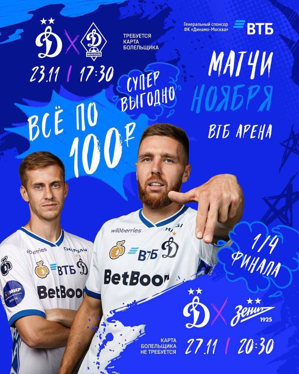 Кто хорошо поработал, тот хорошо отдохнет. На самом деле неважно кто как поработал, эмоциональное состояние очень важно для продуктивности в жизни и работе. Для этого должен быть тот самый баланс между работой и личной жизнью. Есть у меня тут любители футбола? Порадуйте себя или свою половину или своих детей или вообще сделайте семейный выход. За 100₽ на человека очень приятно, я считаю. Например, я взяла на 6 человек билеты те, что стоили 700₽ каждый, обошлись по 100₽ - мелочь, а приятно! Еще и Динамо играют. Я делюсь только проверенными инструментами и теми, которые прошла сама либо с бизнесами на практике, а не в теории, поэтому прикладываю скрин своей покупки билетов, сработавшего промокода, забирайте: 🔵⚪ Футбольный клуб «Динамо» (Москва) приглашает вас выгодно посетить заключительные матчи Динамо в этом году! 📆 23 ноября в 17:30 (воскресенье) 🏟️ ВТБ Арена ⚽ ФК Динамо Москва - ФК Динамо Махачкала По промокоду - IzVJnad9 Билеты по 0️⃣₽ на 1-й ярус трибуны D, 3-й ярус трибу