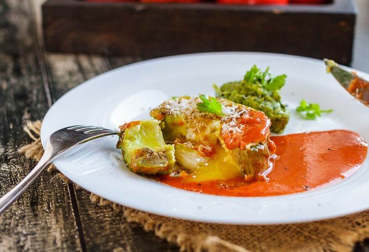 6. Оставшуюся мякоть разомните вилкой в пюре с добавлением мелко рубленой кинзы, щепотки соли, оливкового масла и нескольких капель лимонного сока.