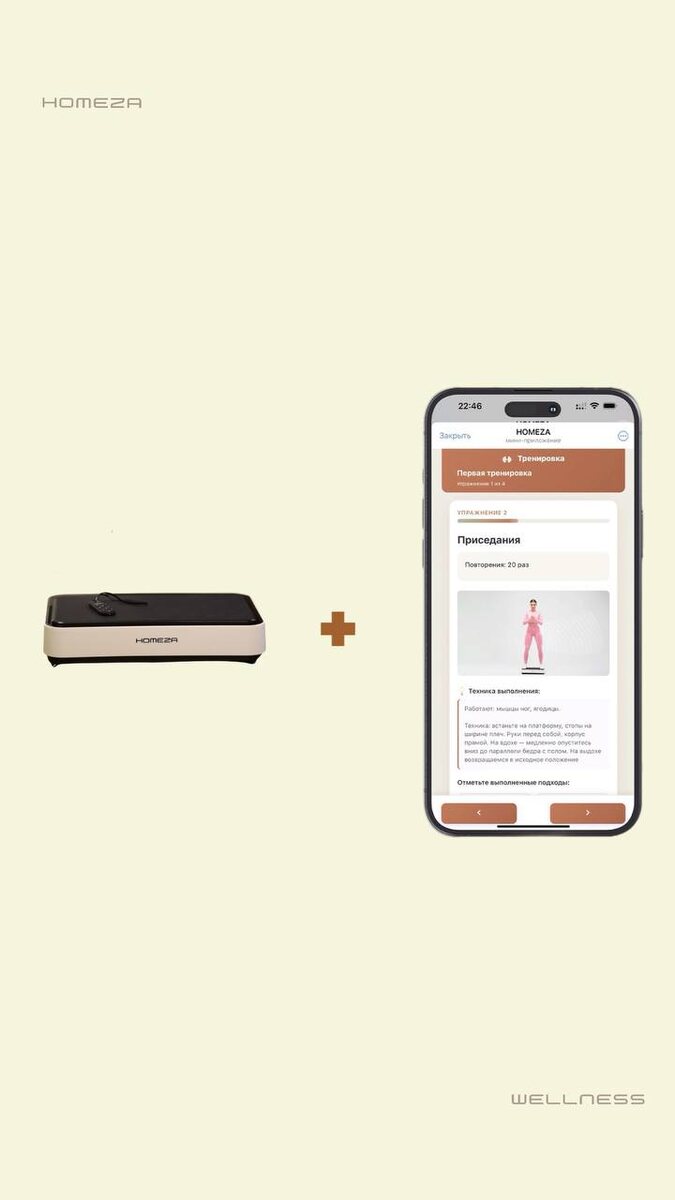 Виброплатформа Homeza – первый тренажер на рынке, который больше чем просто железо. Это целая система для результата. Это буквально оплаченные занятия с тренером и консультации с нутрициологом. Обычно люди покупают домашний тренажер, а он просто пылится где-то в уголке. Но эта история не про Homeza. Потому что с нашими тренажерами мотивация тренироваться идет в комплекте. Ведь есть ощущение поддержки и все составляющие для вашего результата: – приложение – тренер на связи 24/7 – план питания – программа тренировок – напоминания о занятиях и ответы на вопросы – видеоуроки – личные рекомендации от основателя Наша цель – помочь вам не только начать, а сделать комфортный и не изнурительный фитнес частью вашей жизни. Потому что здоровое тело и забота о себе – это тренд, который никогда не выйдет из моды. Ваш Homeza🫂