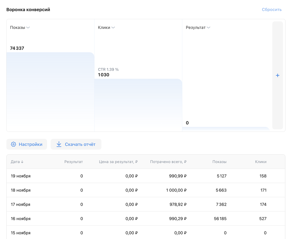 Как-то раз при зарядке автомобиля разговорился с одним человеком (вот что значит нетворкинг!). У нас зашла речь о разных видах рекламы и о том, где черпать лиды. Собеседник упомянул ВКонтакте (ВК). На что я скептически ответил, что ВК, на мой взгляд, едва ли серьезный источник клиентов, разве что для парсинга аудитории. Мы не уточнили, что именно рекламировал этот человек, но, возможно, именно от типа продукта зависит успех. С этой мыслью я наконец-то решил подойти и сам протестировать рекламу в ВК. Тем более, они устраивают акции с удвоением бюджета, что делало эксперимент вполне доступным. Холодный тест: Строгие настройки Имея некий опыт в рекламе, я сразу же настроил максимально суженную и целевую аудиторию, чтобы не сливать бюджет. ВК предлагает оплату либо за просмотры, либо за клики. Это методы, которые, в отличие от оплаты за конверсию (как в Яндекс Директе), очень легко позволяют "сжечь" деньги. Я настроил аудиторию, которая: Результат: На протяжении пяти дней реклама просто с