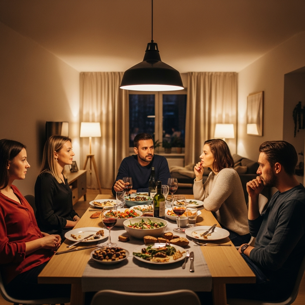 Наташа накрывала на стол, когда в дверь позвонили. Первыми пришли Светка с мужем — её подруга ещё со школы. Потом Димкин коллега Антон с женой. Обычная суббота, обычные посиделки. Раз в месяц собирались, болтали, пили вино.