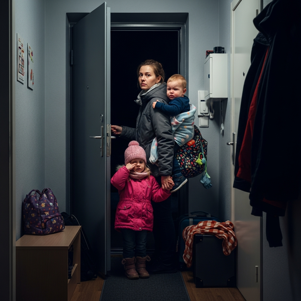 Она не слушала. Одела Лизу — куртку, шапку, сапожки. Потом взяла Сашу на руки. Он заплакал, но она прижала его к себе, укачивая.