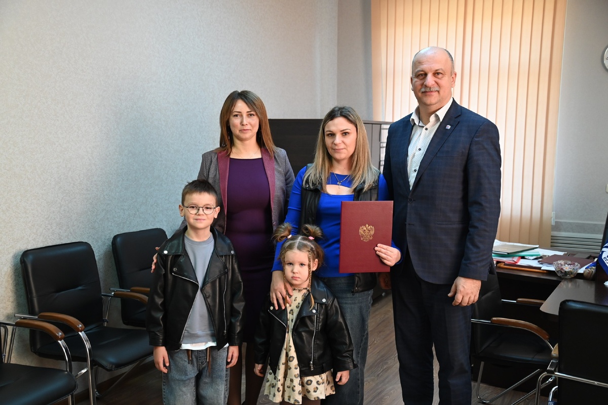 Сегодня глава района А. Н. Таранухин и заместитель главы администрации по социально-культурному развитию района В.Е. Ермак вручили молодой семье из Гиагинского района жилищный сертификат. Документ позволит получить социальную выплату на приобретение или строительство жилья. Сертификат вручен в рамках мероприятия по обеспечению жильём молодых семей ведомственной целевой программы «Оказание государственной поддержки гражданам в обеспечении жильём и оплате жилищно-коммунальных услуг» государственной программы Российской Федерации «Обеспечение доступным и комфортным жильём и коммунальными услугами граждан Российской Федерации».