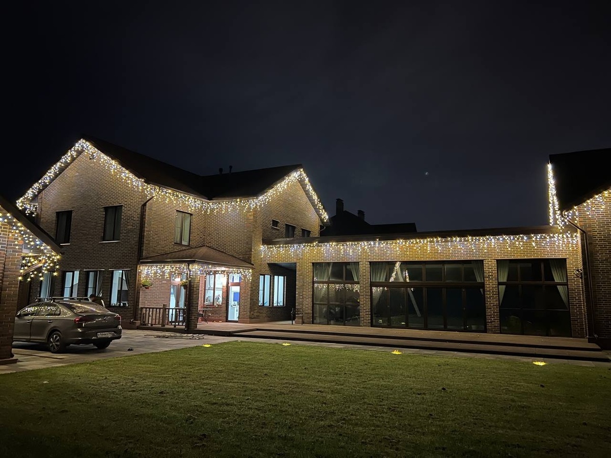 Но есть одно простое решение, которое буквально переворачивает ощущение дома — уличные гирлянды. Мы каждый сезон наблюдаем одну и ту же магию: обычный дом, который кажется серым и незаметным, после установки подсветки превращается в уютное зимнее укрытие, куда хочется возвращаться. Давайте разберёмся, что именно меняется, когда появляется свет. До: дом растворяется в темноте, даже красивый фасад вечером выглядит плоским и холодным.