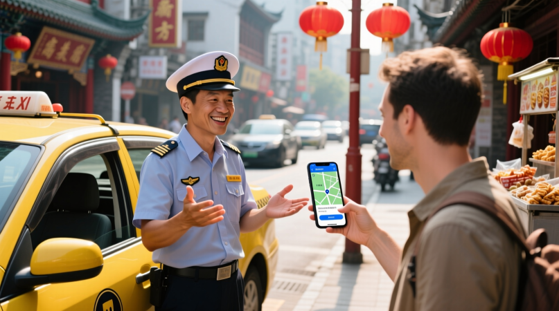 Показывать — эффективно. Перед выездом из отеля попросите ресепшен напечатать карточку с адресом — на китайском. Или сохраните в телефоне: Когда садитесь в такси — просто покажите экран. 💡 Большинство таксистов сами сканируют QR-код своим телефоном и вводят адрес в навигатор. 📌