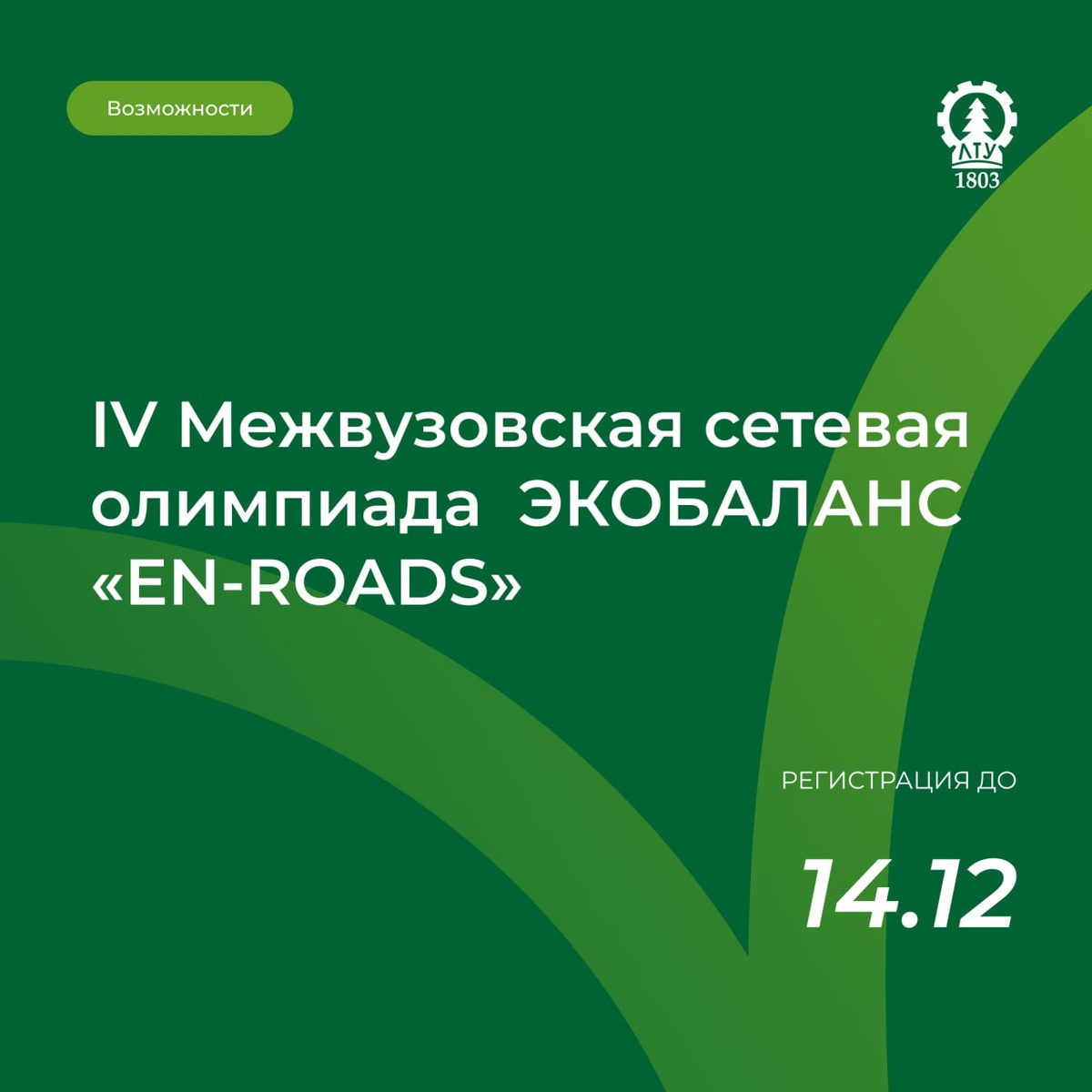Стартует сетевая олимпиада «Экобаланс «EN-ROADS» Цель олимпиады — найти оптимальные решения глобальных энергетических и климатических проблем через моделирование крупномасштабных политических, технологических и социальных изменений Олимпиада пройдет в два этапа: 🟢 1 этап (отборочный): 15–25 декабря 2025 года, в дистанционном формате 🟢 2 этап (финальный): 13–25 февраля 2026 года, в очном формате Командам студентов предстоит работать с имитационной моделью, чтобы понять причинно-следственные связи изменения климата и найти пути для устойчивого развития 📎 Регистрация открыта до 14 декабря 2025 года 🤩 Все подробности и регистрация на сайте 👻 МАХ | 📲 ВК | 📝 ДЗЕН