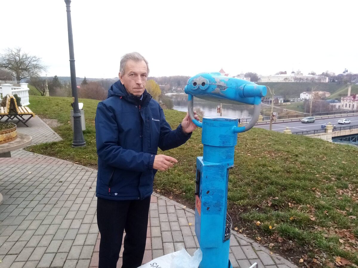 На смотровой площадке по улице Дарвина к 890-летию Гродно был установлен обзорный бинокль, несколькими месяцами раньше к XII фестивалю национальных культур – ротонда. Кстати, бинокуляр был привезен из Москвы в 2018 году и до сих пор исправно работает. Он состоит на балансе УЖРЭП Октябрьского района, приносит небольшой доход, летом чуть получше. Стоимость одной минуты просмотра всего 1 рубль. Журналист газеты «PROГОРОД» познакомился с тем, кто его обслуживает. Это киповец предприятия Михаил Лашук. Он подробно рассказал о бинокуляре и предоставил возможность взглянуть на прекрасные пейзажи на правом берегу Немана – Старый и Новый замки, Каложа, драмтеатр, костел, обновляющийся пивзавод как на ладони.