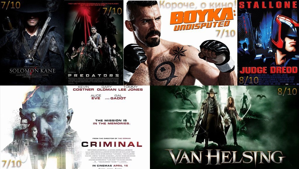 Хорошие плохие фильмы Вне рейтинга: Неоспоримый/Undisputed (второй 2005, третий 2010, четвёртый 2016) Моя оценка: 7 из 10 Оценка на КП/IMDb: 7,6/7,0 История неоспоримого (которого не единожды оспаривали) и непобедимого (которого неоднократно побеждали) чемпиона (хотя чемпионата не было) по подпольным тюремным (которые не всегда проходили в тюрьмах) боями без правил (где были определённые правила) — Юрия Бойко. Рейтинг: 1. Судья Дредд/Judge Dredd 1995 Моя оценка: 8 из 10 Оценка на КП/IMDb: 6.9/5.6 Футуристический мегаполис, засилье преступности, и человек-закон. 2. Ван Хельсинг/Van Helsing 2004 Моя оценка: 8 из 10 Оценка на КП/IMDb: 7.6/6.1 Готическая сказка, собравшая вместе множество монстров, противопоставив им всего одного человека. 3. Соломон Кейн/Solomon Kane 2009 Моя оценка: 7 из 10 Оценка на КП/IMDb: 6.8/6.0 Мрачное фэнтези про проклятого воина, который ищет искупление, но находит лишь больше насилия. 4. Хищники/Predators 2010 Моя оценка: 7 из 10 Оценка на КП/IMDb: 6.5/6.4