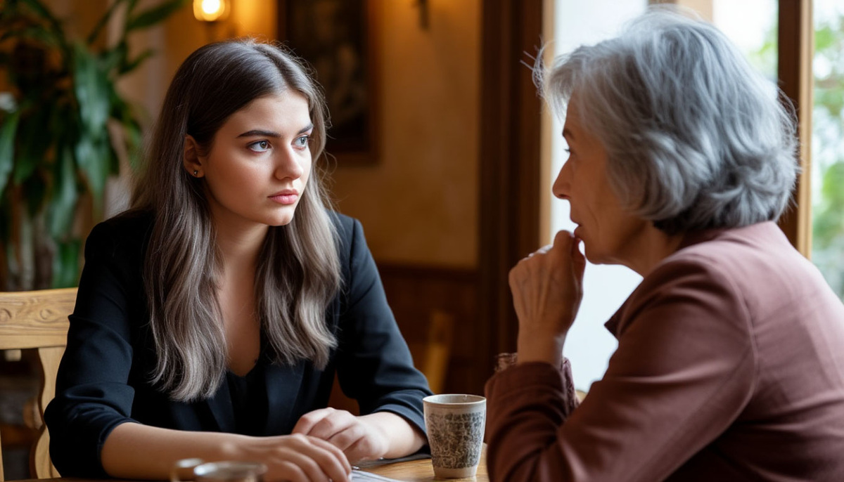 Лена села за стол осторожно, как дикая кошка, готовая в любую секунду сорваться и убежать. Руки дрожали, под глазами тёмные круги. Настя поставила перед ней чашку, села напротив.
