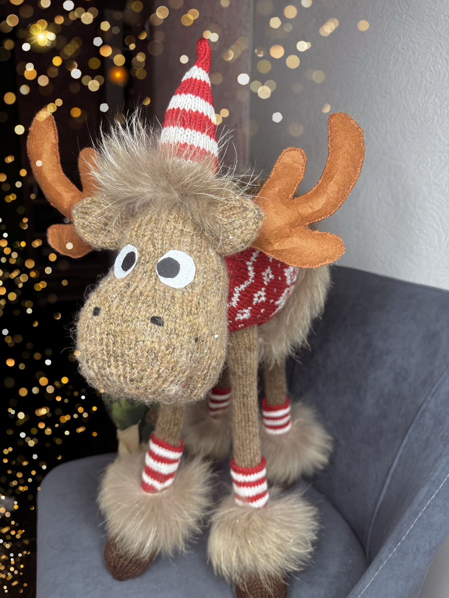 Всем привет😃 Начну с того, что фото оленя пока «сырое», жду снега, чтобы его хорошо отфотографировать, а пока да здравствует фотошоп. Ну и так видно, что он Красавчик. Ходя по магазинам и давно хотя такого оленя, я поняла, ну что дорого отдавать за мазинного оленя в районе 1500-5000, ценны разняться. Но хотя и за полторы можно было купить, но я хочу своего. Так началась моя работа по конструированию вязаного оленя. Конечно, есть что в нем переделать, и у него еще будет одежда, но уже вязаные готовые элементы, которые не требуют переделки, я буду потихоньку выкладывать, чтобы успели его связать и поставить под ёлку на новый год. Что нам понадобиться: Пряжа: Rozetti Honey 100гр-230м( можете взять любую, но от метража пряжи будет зависить, какого размера он получится) Спицы Игла для сшивание деталий Наполнитель Деревянные палки-4шт, покупала на вб Фетр жесткий, коричневый на рога Обычная нить для сшивания деталей рожек, в цвет Фетр белый и черный для глаз Клей момент Ну и коне