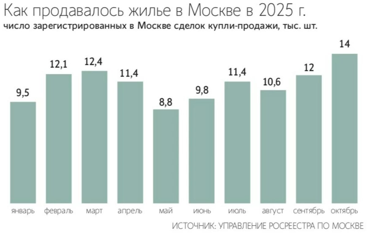 В октябре Росреестр зарегистрировал 13 977 сделок — это максимум с марта и +16,6% к сентябрю. В годовой динамике рынок тоже в плюсе. Но за январь–октябрь вторичка всё ещё идёт с небольшим минусом: –3% г/г. Сдвиг произошёл после снижения ключевой ставки — с 21% летом до 16,5% сейчас. Ипотека на вторичном рынке стала дешевле — 21,2% в октябре против 26,7% в июне. Из-за этого вырос поток заявок: сентябрь — +20,34%, октябрь — +8,36%.