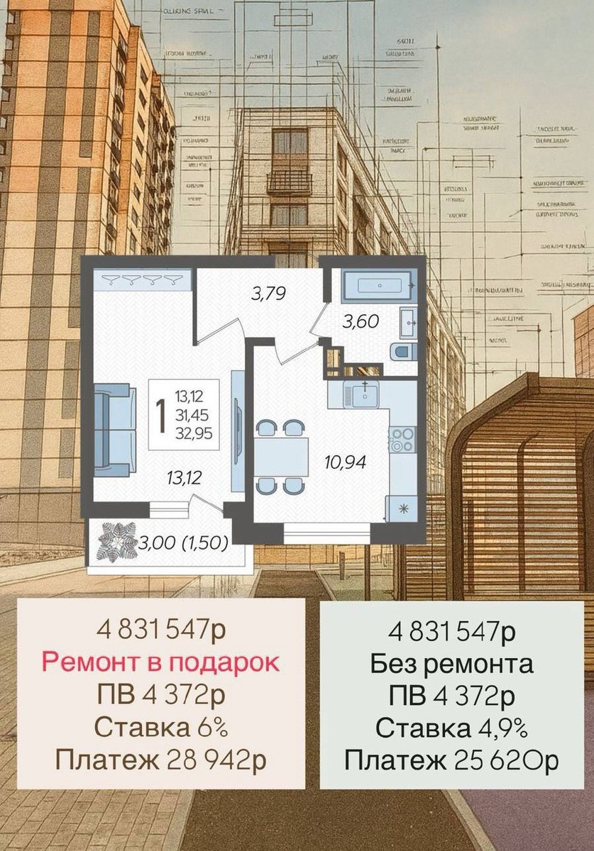 Сегодня подготовил для вас свежие расчёты по квартирам в одном проекте, где сейчас очень интересные условия по семейной ипотеке. Сделал две подборки — с ремонтом и без ремонта, чтобы вы могли сравнить и сразу видеть разницу по ежемесячным платежам. 💠 Если брать с ремонтом в подарок — ставка 6%, — финальная стоимость уже включает готовый интерьер. Это вариант «заехал и живи» — без дополнительных вложений и без ожидания ремонта. 💠 Если брать без ремонта — ставка 4,9%, — можно сделать всё под себя, выбрать материалы и стиль. Отличный вариант, если вы хотите свой дизайн или планируете сдавать квартиру и делаете ремонт «под задачу». Хотите увидеть лучшие варианты лично? Звоните или пишите! Рубан Алексей ☎️+7 960 476-41-26 💬Telegram: https://dzen.ru/id/688132ca0c886621f7e5ca70 #ЖилойКомплекс #НедвижимостьКраснодар #Ипотека #Краснодар #Новостройка