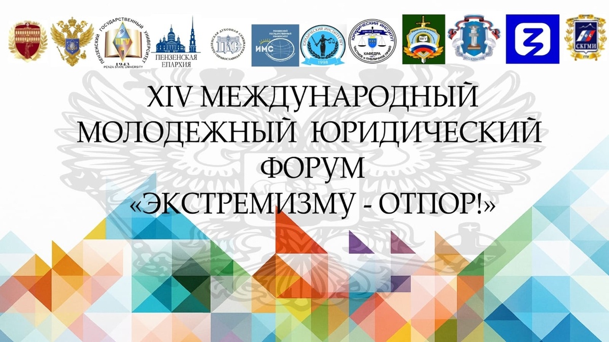 Приглашаем принять участие в ХIV Международном молодежном юридическом форуме «Экстремизму — отпор!». Мероприятие пройдет в Пензенском государственном университете и Пензенской духовной семинарии. Форум проводится в Пензе с 2012 года. Его инициаторами выступили Пензенский государственный университет и Пензенское региональное отделение Общероссийской общественной организации «Ассоциация юристов России». Основная задача форума — выработка и предложение новых форм и конкретных методов профилактики молодежного экстремизма и борьбы с ним. Ежегодно ПГУ дает возможность участникам собраться вновь, чтобы обсудить проблемы экстремизма, которые с каждым годом ставятся более острыми. В этом году форум будет проходить на двух площадках: в Пензенском государственном университете и Пензенской духовной семинарии. Основные направлениями форума: — Правовое обеспечение национальной безопасности.