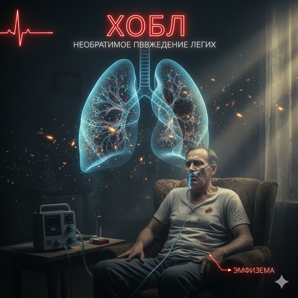 ЧТО БУДЕТ, ЕСЛИ... мужчина будет игнорировать хронический кашель, одышку и частые бронхиты — история Сергея, который считал себя "слишком молодым для ХОБЛ" «Сергей считал, что его утренний кашель — это просто "кашель курильщика", который скоро пройдет. Пульмонолог объяснил, что это кашель от умирающих легких, и зовут это ХОБЛ». 🎬 Эпизод 1. Маскировка и самообман — вечный "бронхит" Сергей, 45 лет, — заядлый курильщик с 20-летним стажем. Он постоянно страдает от хронического кашля с мокротой, особенно по утрам, и частых простуд, которые быстро переходят в бронхит. Ему стало трудно подниматься по лестнице из-за одышки (диспноэ). Сергей убеждал себя, что это просто "последствия курения" или "ослабленный иммунитет", а одышка — это "плохая физическая форма". Он отказывался от визита к пульмонологу, считая, что ХОБЛ (хроническая обструктивная болезнь легких) — это удел стариков. — "Сергей, ты задыхаешься даже после пары шагов. Тебе нужно бросить курить и обследоваться," — говорит его жена.