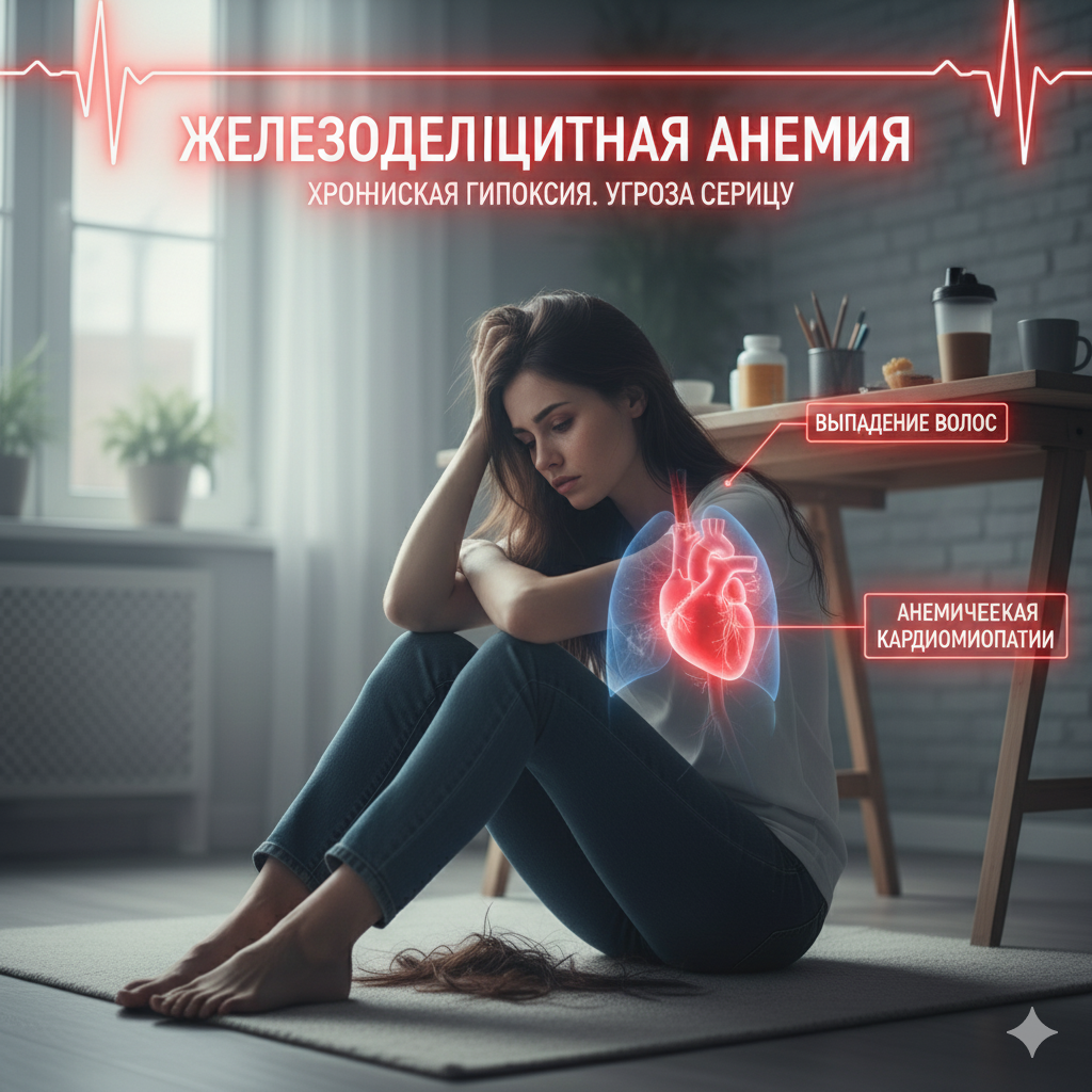 ЧТО БУДЕТ, ЕСЛИ... женщина будет игнорировать постоянную усталость, бледность и сильное выпадение волос — история Дарьи, которая считала это "стрессом и диетой" «Дарья считала, что ее хроническая слабость — это "цена за красоту и активность". Гематолог объяснил, что это цена за недостаток железа, и зовут это железодефицитная анемия». 🎬 Эпизод 1. Диеты и "вечная усталость" — маскировка проблемы Дарья, 30 лет, — активный менеджер. Последние несколько лет она постоянно сидит на диетах, часто исключая красное мясо. Она страдает от хронической, необъяснимой усталости, головокружений и бледности. Самый тревожный симптом — сильное выпадение волос. Она убеждена, что все это результат стресса на работе и ее жестких диет. Вместо того чтобы сдать анализ крови, она покупает дорогие витаминные комплексы для волос, которые не дают результата. — "Дарья, ты совсем не ешь мясо, ты очень бледная. Тебе нужно проверить гемоглобин," — говорит ей мама. — "Мама, я же пью витамины! Это просто я очень много