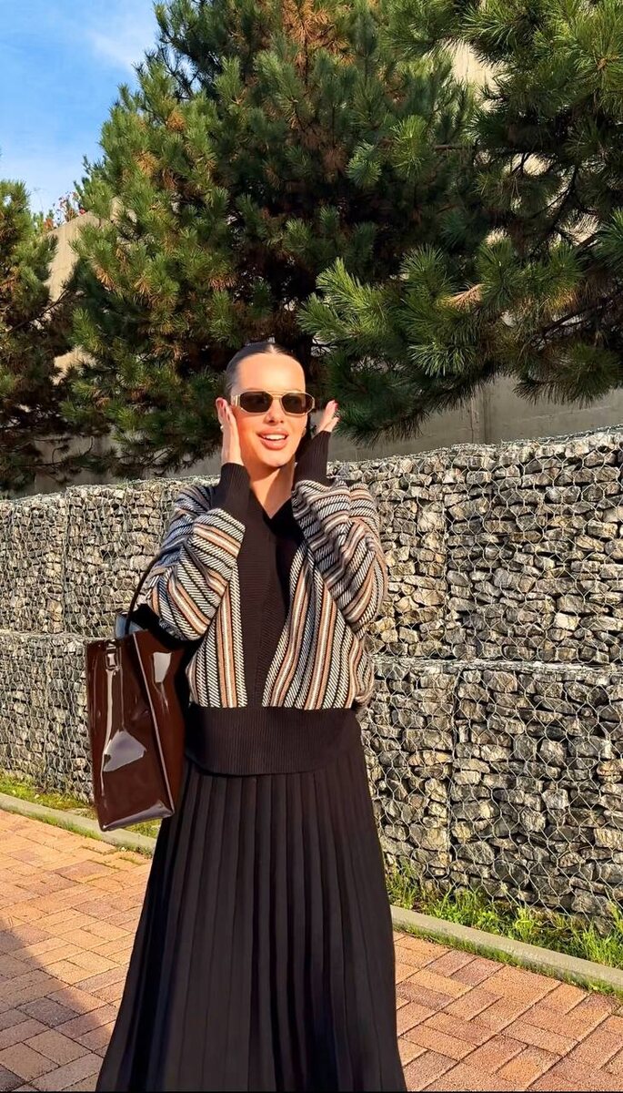 Стиль, который говорит сам за себя ✨ Костюмный дуэт из премиальной вязки в благородном черном ахромате. Юбка плиссе длины миди изящно подчеркивает силуэт и добавляет образу динамику, а джемпер с декоративным принтом и женственным V-образным вырезом делает комплект актуальным и безупречным как для офиса, так и для городских выходов. Это тот случай, когда комфорт и стиль идеально совпадают. Черный цвет — всегда уверенность. Премиальная вязка — всегда статус. Создайте образ, который запомнят🖤 Цена 6500- Оформить заказ, помочь с размером - напишите нашим менеджерам online