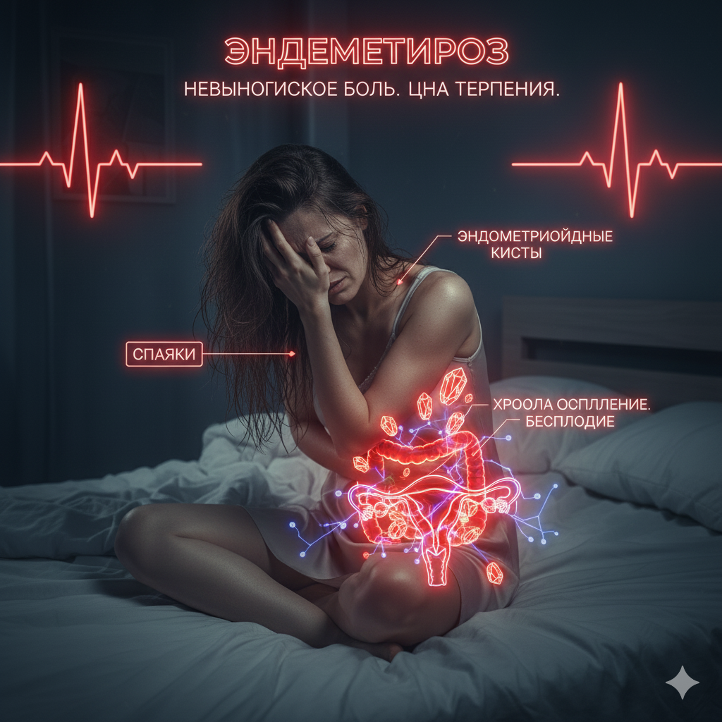 ЧТО БУДЕТ, ЕСЛИ... женщина будет игнорировать хроническое кровотечение, сильные боли во время менструации и боль при половом акте — история Светланы, которая считала это "женской долей" «Светлана считала, что ее невыносимая боль — это просто "тяжелые месячные". Гинеколог объяснил, что эта боль вызвана ростом тканей за пределами матки, и зовут это Эндометриоз». 🎬 Эпизод 1. Терпение и обезболивающие — маскировка страданий Светлана, 35 лет, страдает от сильнейшей, изматывающей боли во время менструации (дисменорея), которая требует приема больших доз обезболивающих. Кроме того, ее менструации стали очень обильными и длительными (до 7–10 дней). У нее также появилась боль во время полового акта (диспареуния). Она убеждена, что это "женская доля" и что "так было всегда". Она избегает гинеколога, боясь, что ее назовут слишком чувствительной или назначат гормоны. — "Светлана, ты снова выглядишь измученной и еле ходишь. Тебе нужно обследоваться," — говорит ей подруга. — "Это просто у меня та