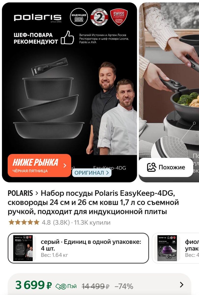 Набор посуды Polaris EasyKeep-4DG, сковороды 24 см и 26 см ковш 1,7 л со съемной ручкой, подходит для индукционной плиты https://market.yandex.ru/cc/84S4Ra ‼️ииии получаем деньги от 500 ₽ на карту за отзыв ✨✨ ✅ Подписаться 🔣 Бот с промокодами