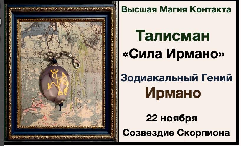 Зодиакальный Гений Ирмано — покровитель работников профессиональных союзов и политических деятелей. Он формирует характер тех, кто открыто защищает права обездоленных и становится голосом своих единомышленников. Если вы стремитесь к справедливости и хотите оказывать влияние на окружающий мир, этот талисман создан именно для вас! 🔮 Как работает Талисман «Сила Ирмано»? 🔮 Если вы Мастер Магии, то время ритуала Высшей Магии Контакта, вы сможете установить ментальный энергоинформационный контакт с Зодиакальным Гением Ирмано. Этот удивительный процесс откроет двери к новым возможностям и поможет вам использовать силу Зодиакального Гения по своему усмотрению. Если вы не Мастер Магии, но вас есть желание получить покровительство от Зодиакального Гения Ирмано, то очень подробная инструкция поможет вам провести самостоятельно ритуал Высшей Магии Контакта, (инструкция высылается вместе с Талисманом Силы) и установить энергоинформационный контакт с Зодиакальным. Гением. ⚠️ Важно помнить! Талис