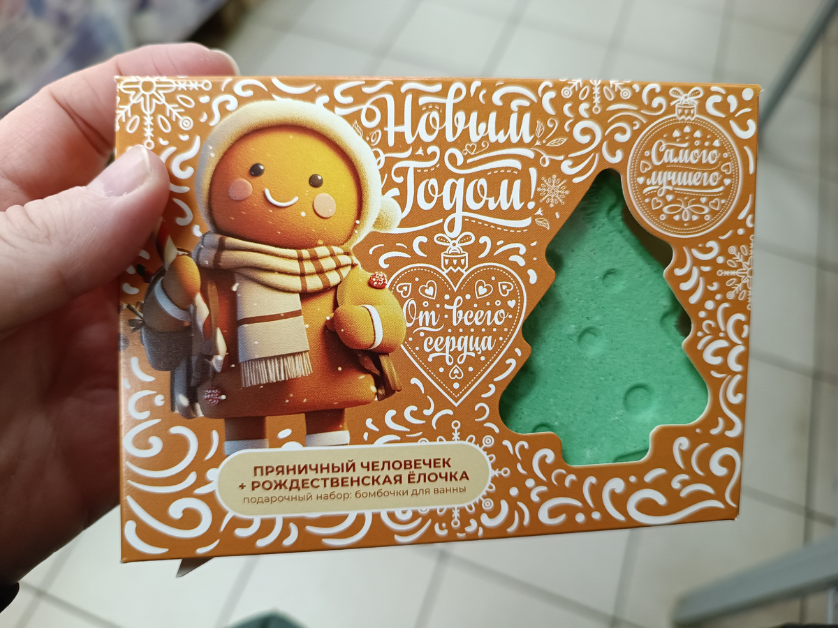 Смотрите, подарочный набор - бомбочки для ванны пряничный человечек + рождественская елочка.