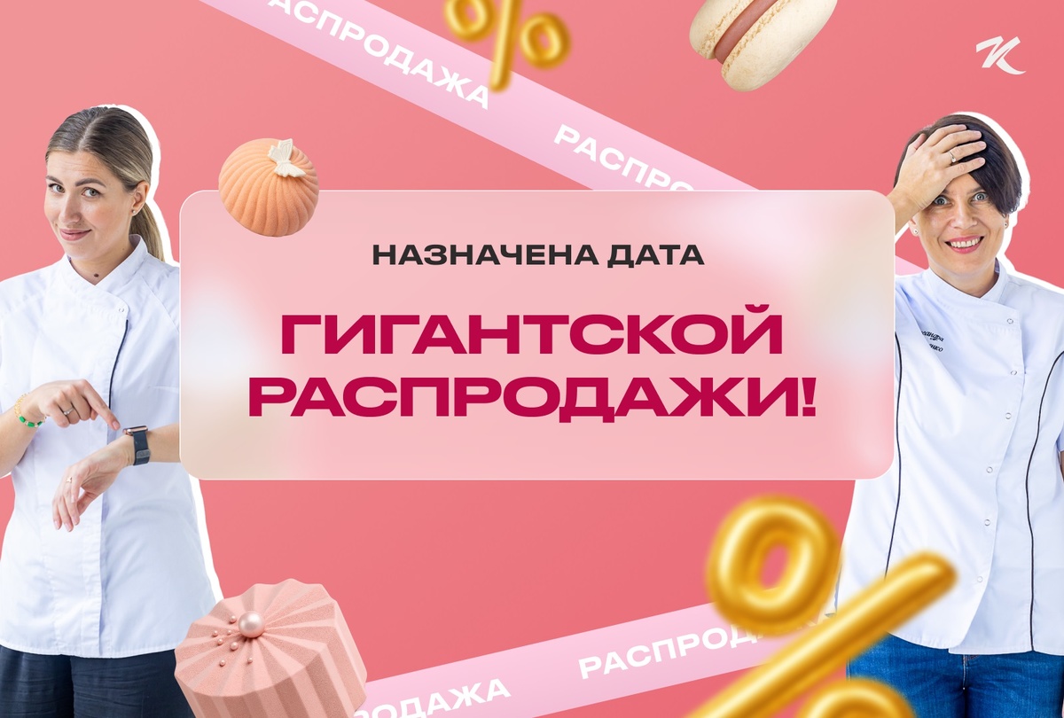 А кондитерское искусство — правильных инструментов и рецептов, которые не подведут 🍳📚 С венчиком двадцатилетней давности и рецептом «от бабушкиной соседки» далеко не уедешь. И вот тут — барабанная дробь 🥁 — отличная новость, от которой у кондитеров обычно подпрыгивает сахар в крови: 🎉 26 ноября в 12:00 МСК стартует наша Гигантская распродажа Та са