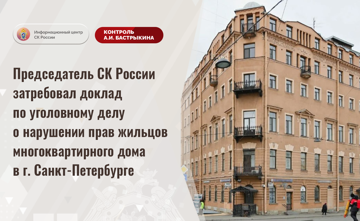 Председатель СК России затребовал доклад по уголовному делу о нарушении прав жильцов многоквартирного дома в г. Санкт-Петербурге