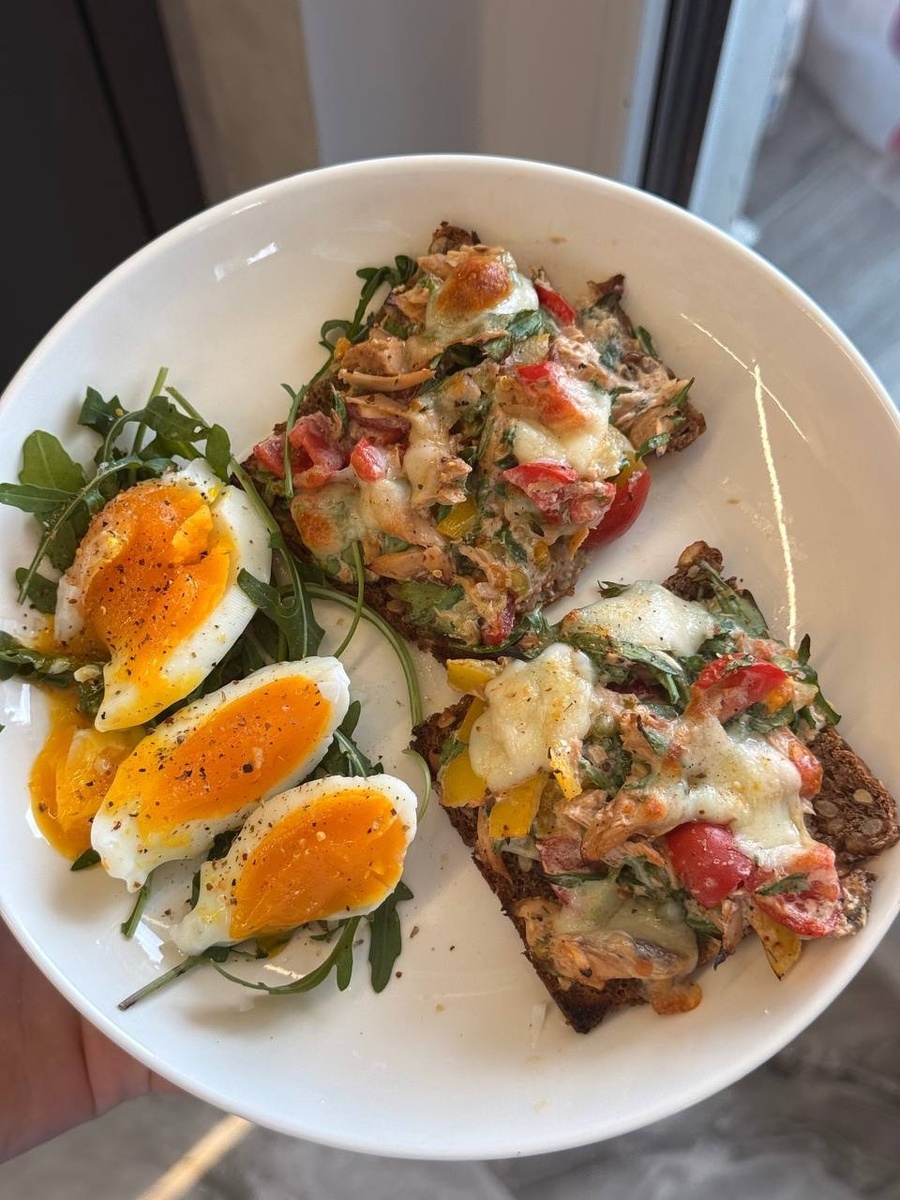 Свежий тунец считается деликатесом во всем мире, а вот консервированный доступен практически в любом магазине. Причем можно выбрать разные варианты - в собственном соку, в масле, целиком или кусочками. Я предпочитаю тунец в собственном соку, чтобы в составе была только рыба и соль. Тунца очень удобно использовать при приготовлении всевозможных закусок и быстрых перекусов. Например, вот таких бутербродов. Нам понадобятся следующие ингредиенты для начинки: Совет: потрясите консервную банку перед покупкой. Чем больше в ней жидкости, тем меньше рыбы. Все это хорошо перемешиваем и выкладываем начинку на хлебушек. Сверху кладем сыр, можно немного посыпать травами или черным перцем, запекаем 5-7 мин при 200 градусах. Сыр для этого блюда подойдет любой — твердый, полутвердый, мягкий, типа моцареллы. Главное, чтобы он был вкусным, качественным, без заменителей молочных жиров и хорошо плавился. Подавайте тосты сразу после приготовления, пока тосты горячие. Я люблю подавать с яичком и украсит