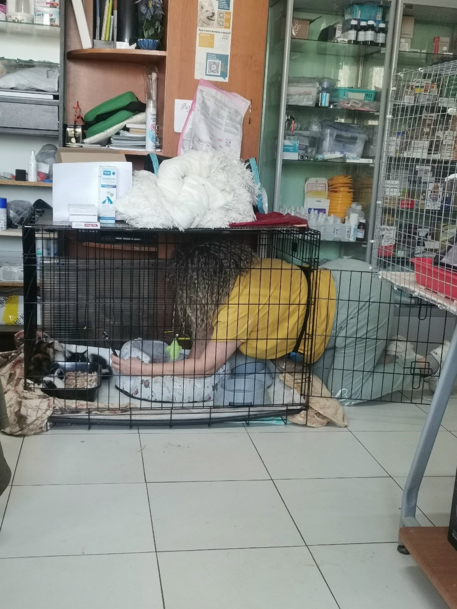 Работать в приюте - это значит оказываться в самых разных позах в самый неожиданный момент.