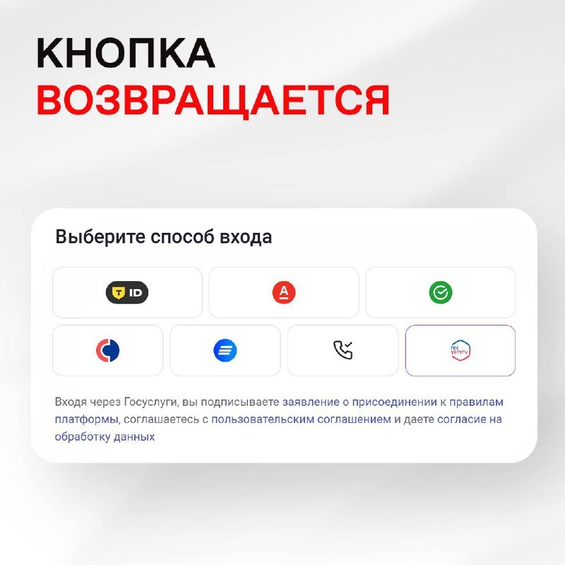 Вечером 18 ноября на странице входа Финуслуг исчезла кнопка «Госуслуги». Это был важный и нужный эксперимент. Благодаря вам мы поняли, насколько эта кнопка необходима. Поэтому вернули ее на страницу в новом обличии. Прожмите ❤️, если мы всё сделали правильно.