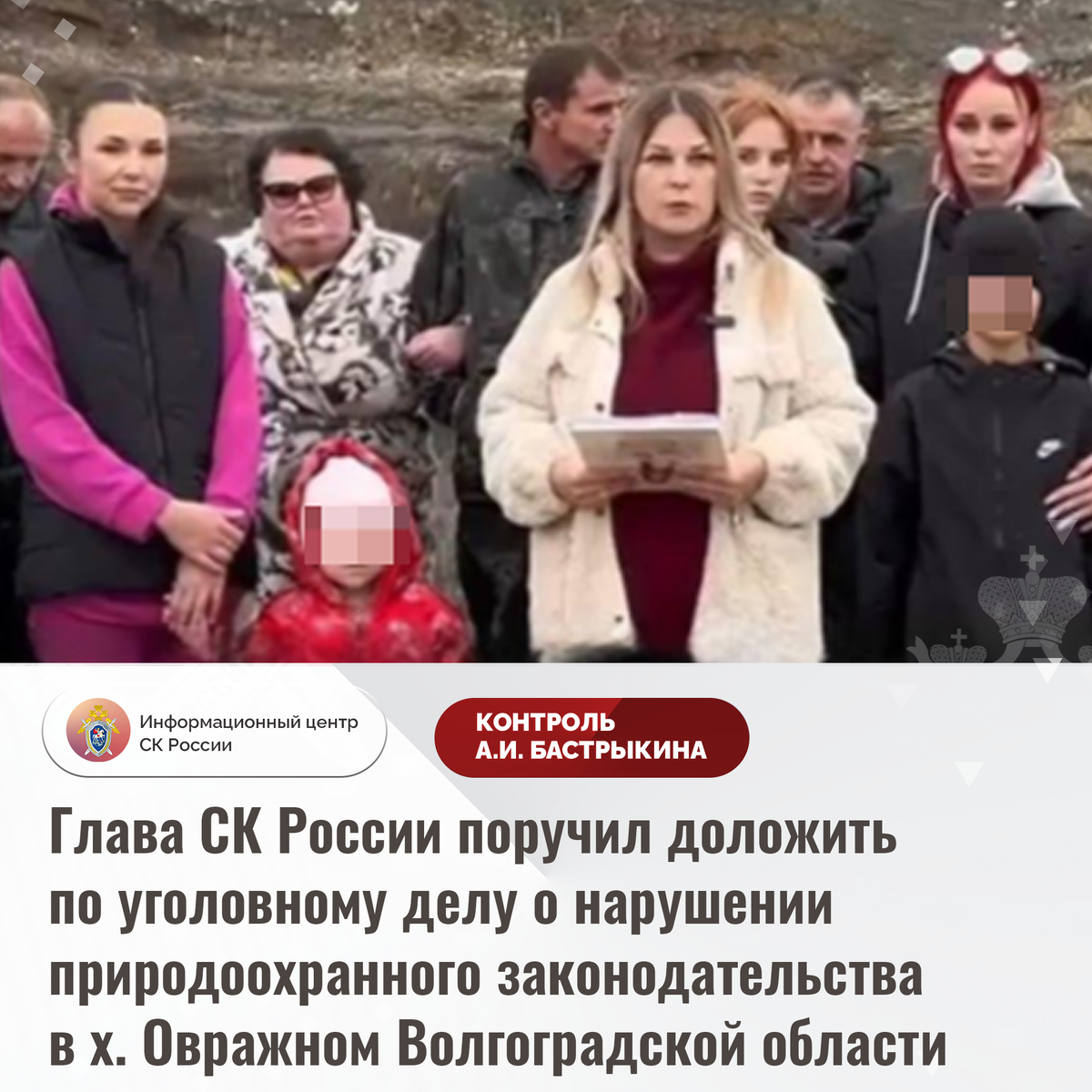 Глава СК России поручил доложить по уголовному делу о нарушении природоохранного законодательства в х. Овражном Волгоградской области В комментариях в аккаунте приёмной Председателя СК России А.И. Бастрыкина «ВКонтакте» опубликовано видеообращение по вопросу нарушения природоохранного законодательства в хуторе Овражном Волгоградской области. На протяжении 20 лет в непосредственной близости от жилых домов и лесного массива функционирует полигон для хранения твердых бытовых отходов, где систематически происходят возгорания. Указанное приводит к загрязнению почвы и реки Мокрая Мечетка, впадающей в реку Волгу, а также к выбросу в атмосферу токсичных веществ. Многочисленные обращения в различные инстанции результатов не принесли. Указанная ситуация освещалась в социальной сети. В СУ СК России по Волгоградской области возбуждено уголовное дело. Председатель Следственного комитета Российской Федерации Александр Иванович Бастрыкин поручил руководителю СУ СК России по Волгоградской области Вас