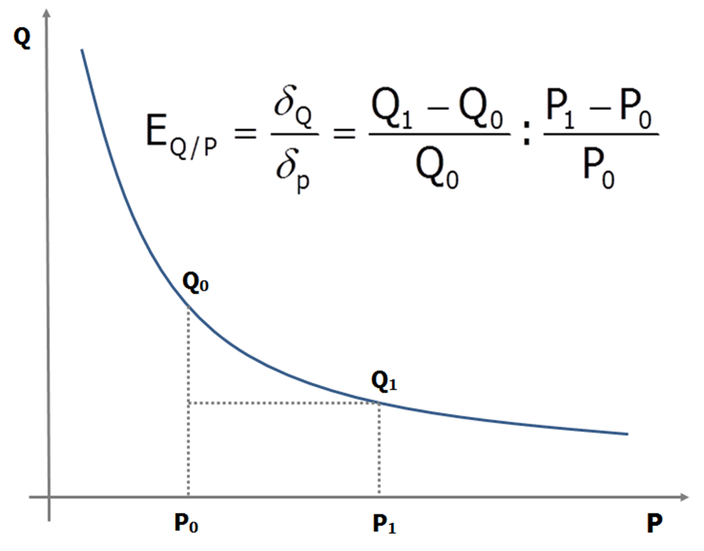 Eq/p = (Q1 – Q0 ) / Q0 : (P1 – P0) / P0 (1)