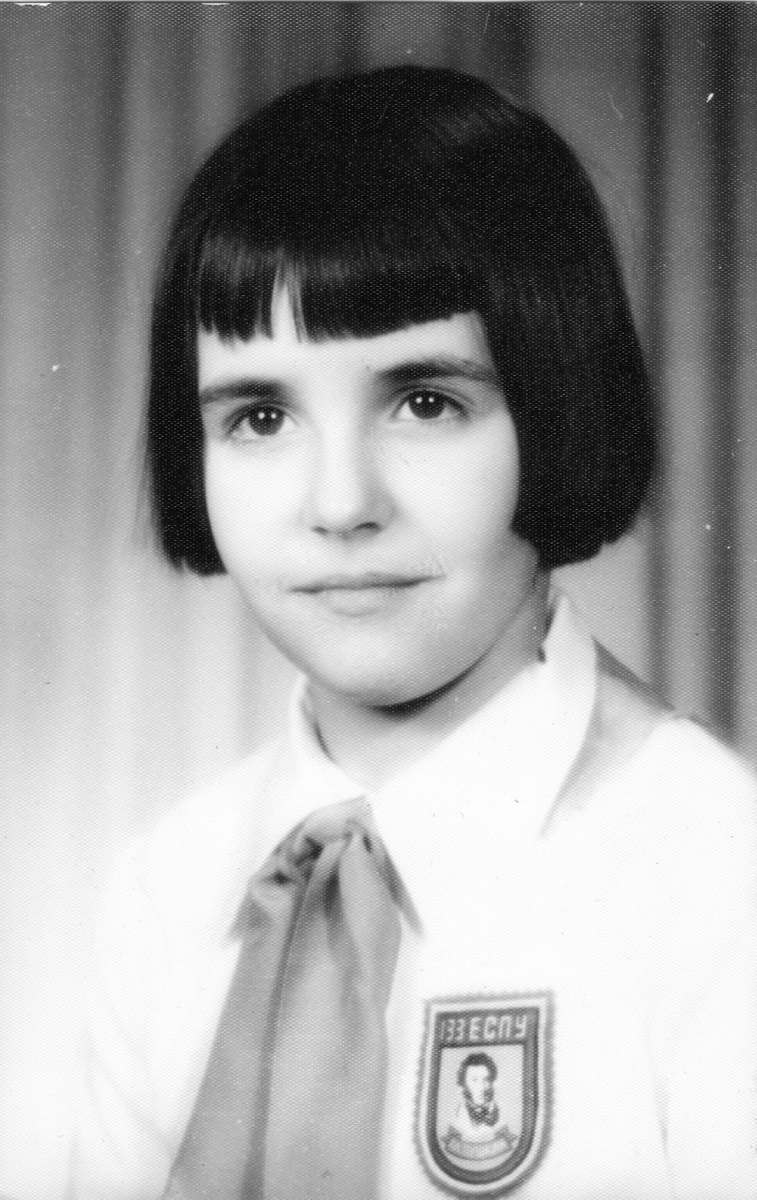 Девочка-пионер с нашивкой 133 Языковой средней подготовительной школы им. А.С. Пушкина в Софии (Болгария). ЕСПУ - Езиково Средно Подготвително Училище. Источник: отсканированная фотография из личной коллекции. #фото #школа #пионер #Болгария