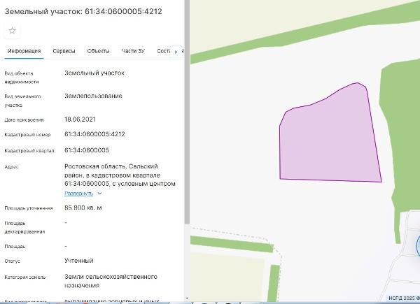 Название: 61:34:0600005:4212, Ростовская область, Сальский район, в кадастровом квартале 61:34:0600005, с условным центром в п. Гигант Канал: Госземля Ростовская область Область: обл Ростовская Район: м.р-н Сальский Населенный пункт: с.п. Гигантовское, п Гигант Локация: Смотреть на карте ВРИ: Выращивание зерновых и иных сельскохозяйственных культур Кадастровый номер: 61:34:0600005:4212 Кадастровая стоимость: - Вид сделки: Аренда Площадь: 85800 м² Начальная цена: 77000.00 руб. Дата завершения: 10.12.2025 Подробнее: ГИС ТОРГИ #госземля #земляотгосударства #земля #земельныйучасток #земельныеторги #торги #аукцион #арендаземли #аренда #ростовскаяобласть