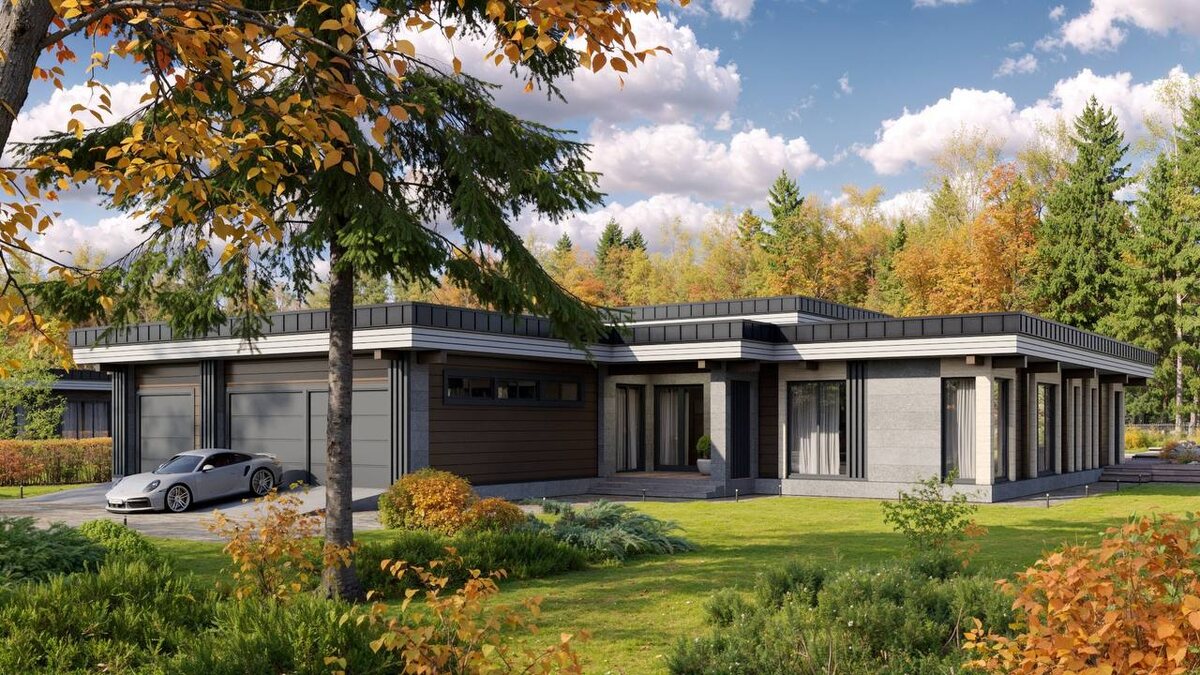 Осенний ландшафт приобретает особое очарование, когда в нём присутствует деревянный дом. Он не выглядит чужеродным элементом, а словно вливается в пейзаж, становясь его неотъемлемой деталью. Тёплые оттенки и выразительная текстура древесины идеально сочетаются с красочной палитрой осени: с янтарными тонами опавшей листвы, с пламенными красками кустарников и с нежными, немного приглушёнными цветами увядающего природного убранства. Кажется, что дом и деревья выросли здесь одновременно, составляя единое целое.