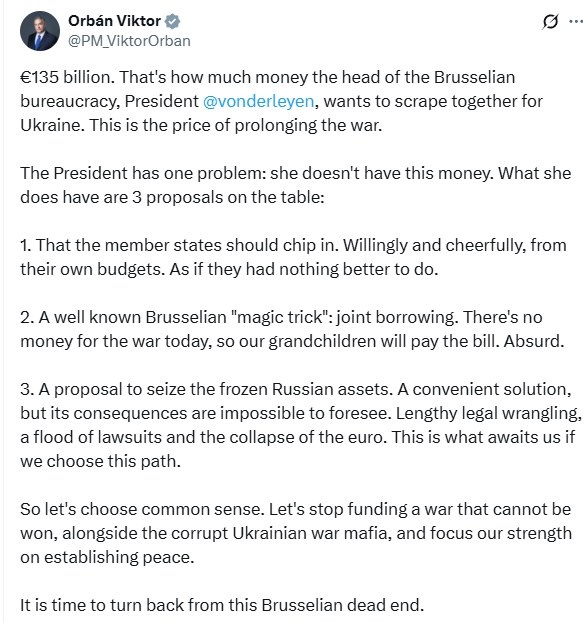Ursula von der Leyen seems to be a pro at finding creative ways to make everyone pay for the prolonged conflict... Hungarian PM Orban explains the consequences