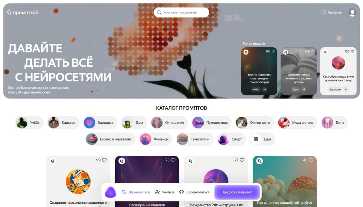 Π°Π±. ΠΡΠΎ ΠΊΠ°ΡΠ°Π»ΠΎΠ³ ΠΏΡΠΎΠΌΡΠΎΠ² Π½Π° Π²ΡΠ΅ ΡΠ»ΡΡΠ°ΠΈ ΠΆΠΈΠ·Π½ΠΈ. + ΠΌΠΎΠΆΠ½ΠΎ Π·Π°Π³ΡΡΠ·ΠΈΡΡ ΡΠ²ΠΎΠΈ ΠΏΡΠΎΠΌΠΏΡΡ. ΠΠ΅ΡΡΠΎ ΠΎΠ±ΠΌΠ΅Π½Π° ΠΈΠ΄Π΅ΡΠΌΠΈ, ΠΊΠ°ΠΊ ΠΈΡΠΏΠΎΠ»ΡΠ·ΠΎΠ²Π°ΡΡ ΠΠ»ΠΈΡΡ AI ΠΈ Π΄ΡΡΠ³ΠΈΠ΅ Π½Π΅ΠΉΡΠΎΡΠ΅ΡΠΈ. ΠΡΡ ΠΎΠ½ΠΈ Π΄ΠΎΠ±Π°Π²ΠΈΠ»ΠΈ ΡΡΠ΄Π° Π±Π΅ΡΠΏΠ»Π°ΡΠ½ΡΠ΅ ΠΊΡΡΡΡ ΠΈ ΠΠ-ΡΠ΅Π»Π»Π΅Π½Π΄ΠΆΠΈ Ρ ΠΏΡΠΈΠ·Π°ΠΌΠΈ Π΄ΠΎ 250 000 ΡΡΠ±Π»Π΅ΠΉ. ΠΠ½Π΅ ΠΊΠ°ΠΊ ΠΏΡΠΎΠ΄ΡΠΊΡΠΎΠ²ΠΎΠΌΡ Π΄ΠΈΠ·Π°ΠΉΠ½Π΅ΡΡ, ΠΎΡΠ΅Π½Ρ Π½ΡΠ°Π²ΡΡΡΡ ΠΏΡΠΎΠ΄ΡΠΊΡΡ Π―Π½Π΄Π΅ΠΊΡΠ° ΠΈ ΠΊΠ°ΠΊ ΠΎΠ½ΠΈ Π²ΡΡΡΡΠ°ΠΈΠ²Π°ΡΡ ΡΠΊΠΎΡΠΈΡΡΠ΅ΠΌΡ. ΠΠ½Π°ΡΠΎΠΊ ΠΏΡΠΎΠΌΠΏΡΡ