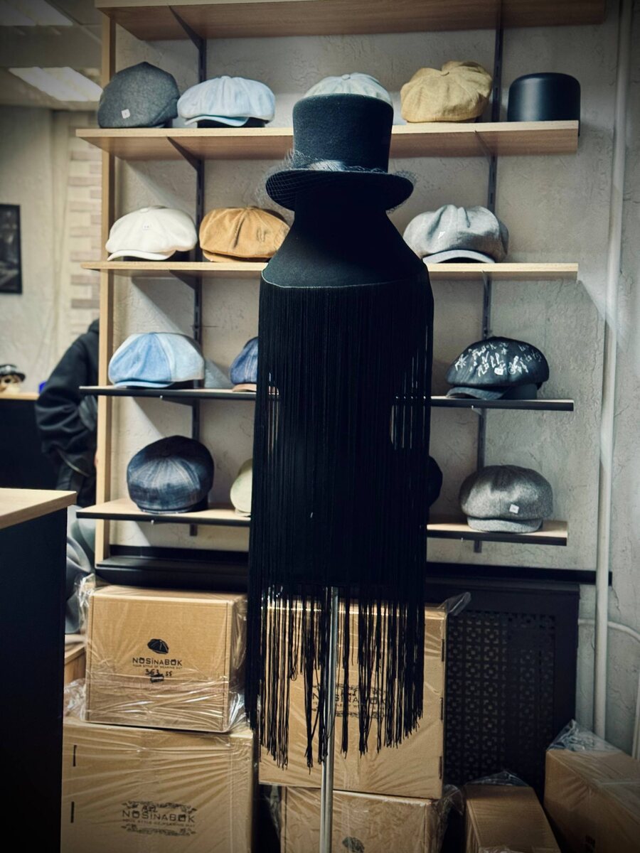 Друзья, всем привет!)👋 Наше небольшое отсутствие подошло к концу) На фото — несколько кадров изготовления классического цилиндра и его неожиданный дуэт со шляпой, для которой мы пришили длинную бахрому, когда готовились к показу. Получился образ, достойный самой Мортиши Аддамс. Классический цилиндр иногда бывает очень кстати, например, если вы ищете нотку таинственности, элегантности и лёгкого безумия. #цилиндр #чёрный #6см