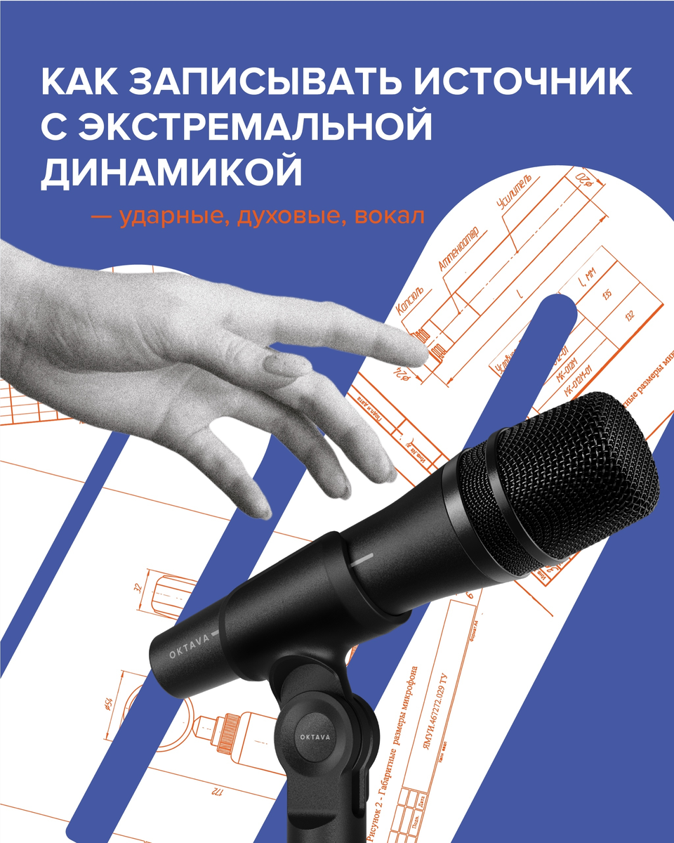 Для ударных и медных духовых подойдут динамические модели с высоким SPL. Динамические микрофоны менее чувствительны к перегрузкам, более выносливы и стабильны. Но имеют, как правило, ограниченный частотный диапазон, в силу строения капсюля. На эту роль прекрасно подходит Октава МД-307. Он способен легко выдержать резкие пики без искажений и широко применяется в записи ударных, гитарных комбоусилителей. Для вокала лучше использовать конденсаторный микрофон с хорошей чувствительностью и качественной звукопередачей. Например, МК-117, МК-012 и подобные. 2. Позиционирование.