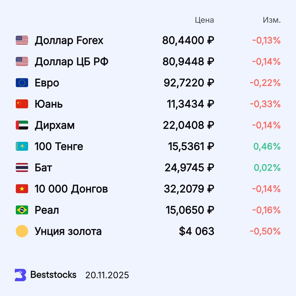 Курсы доллара США, евро, юаня, дирхама, тенге и золота на текущий момент #валюта #курс #доллар #евро #юань #дирхам #тенге #золото ••••• 🔥 Получайте более 400 свежих прогнозов по акциям каждый день. Выбирайте самый высокий потенциал, рейтинг аналитика, срок прогноза и биржу, где торгуется акция.